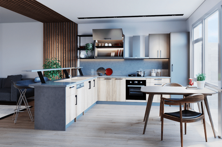 Căn bếp hiện đại với cách bố trí khoa học, giúp không gian luôn thông thoáng và giảm thiểu hỏa khí. Nguồn Hometime.