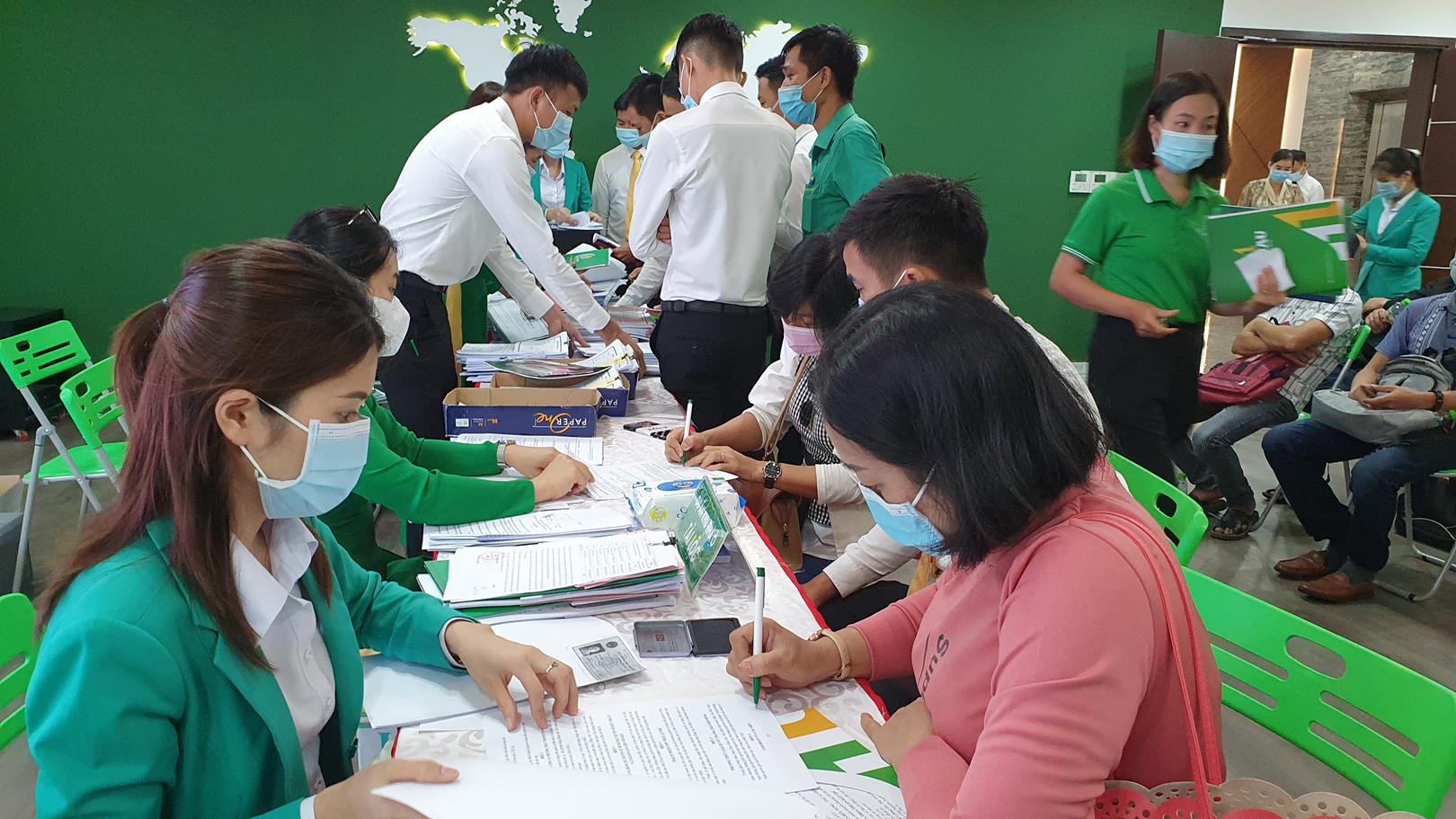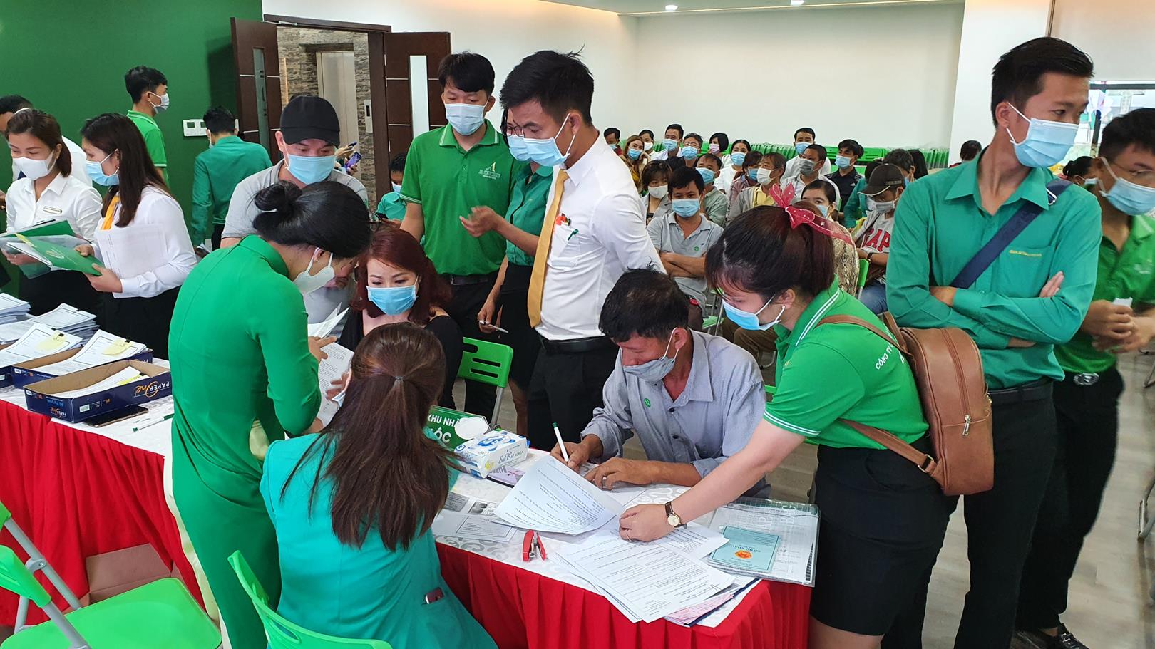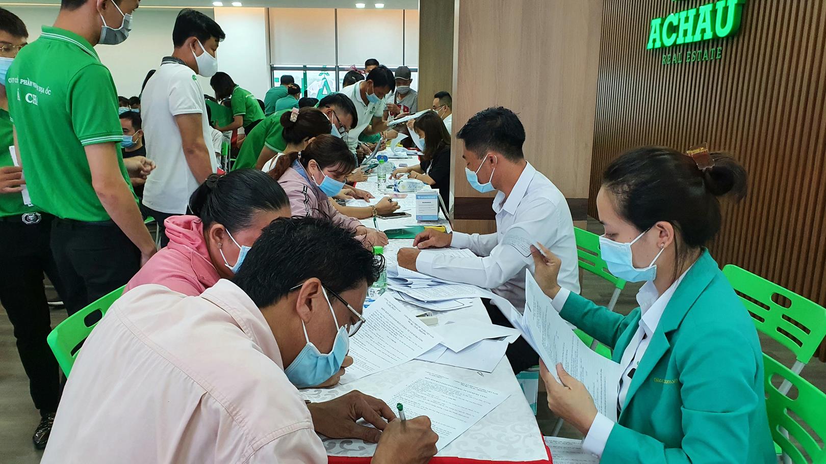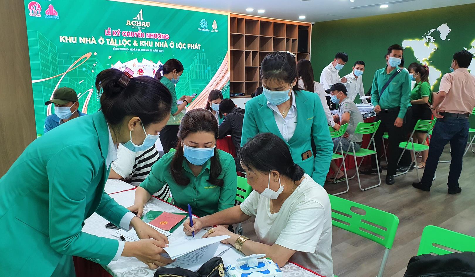 Tuân thủ các quy tắc 𝗽𝗵𝗼̀𝗻𝗴 𝗰𝗵𝗼̂́𝗻𝗴 𝗱𝗶̣𝗰𝗵, tất cả các khách hàng đến Địa ốc Á Châu đều được phát khẩu trang, đo thân nhiệt, rửa tay diệt khẩu và 𝗸𝗵𝗮𝗶 𝗯𝗮́𝗼 𝘆 𝘁𝗲̂́ trước khi làm thủ tục ký chuyển nhượng.