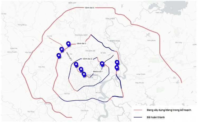 Một điểm nhấn nổi bật là quy hoạch phát triển theo mô hình TOD (Transit Oriented Development). TP Hồ Chí Minh đã chọn 46 khu đất, tổng diện tích 7.397 ha, triển khai TOD với 11 vị trí thí điểm dọc tuyến Metro số 1, số 2 và Vành đai 3. Đây là cơ sở để hình thành các khu đô thị tích hợp, thương mại - dịch vụ quanh ga metro, dự báo giúp giá BĐS tăng 20-30% sau khi hạ tầng hoàn thiện.
