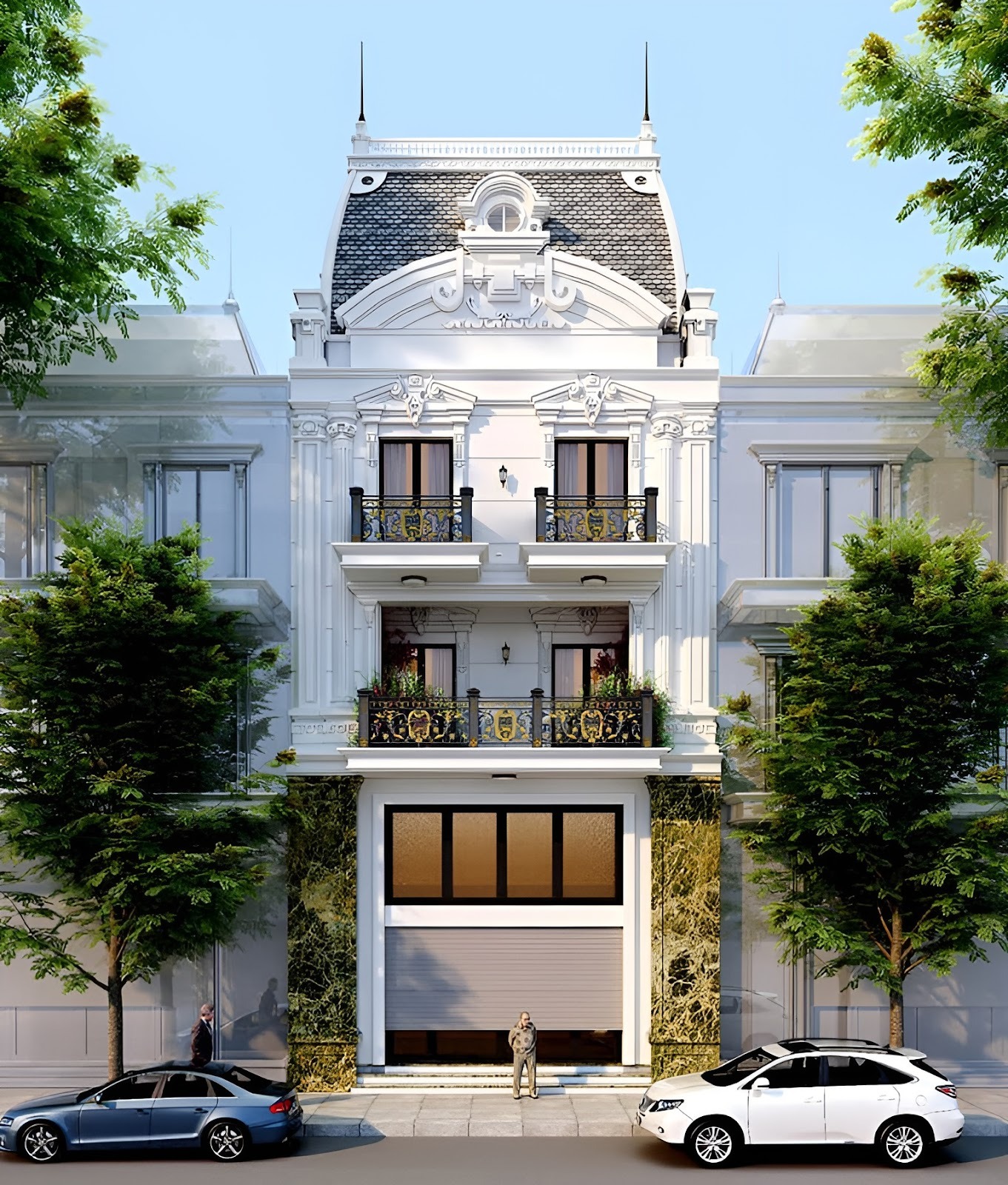 Nhà ống 3 tầng tân cổ điển mang vẻ sang trọng. Nguồn 3B Design