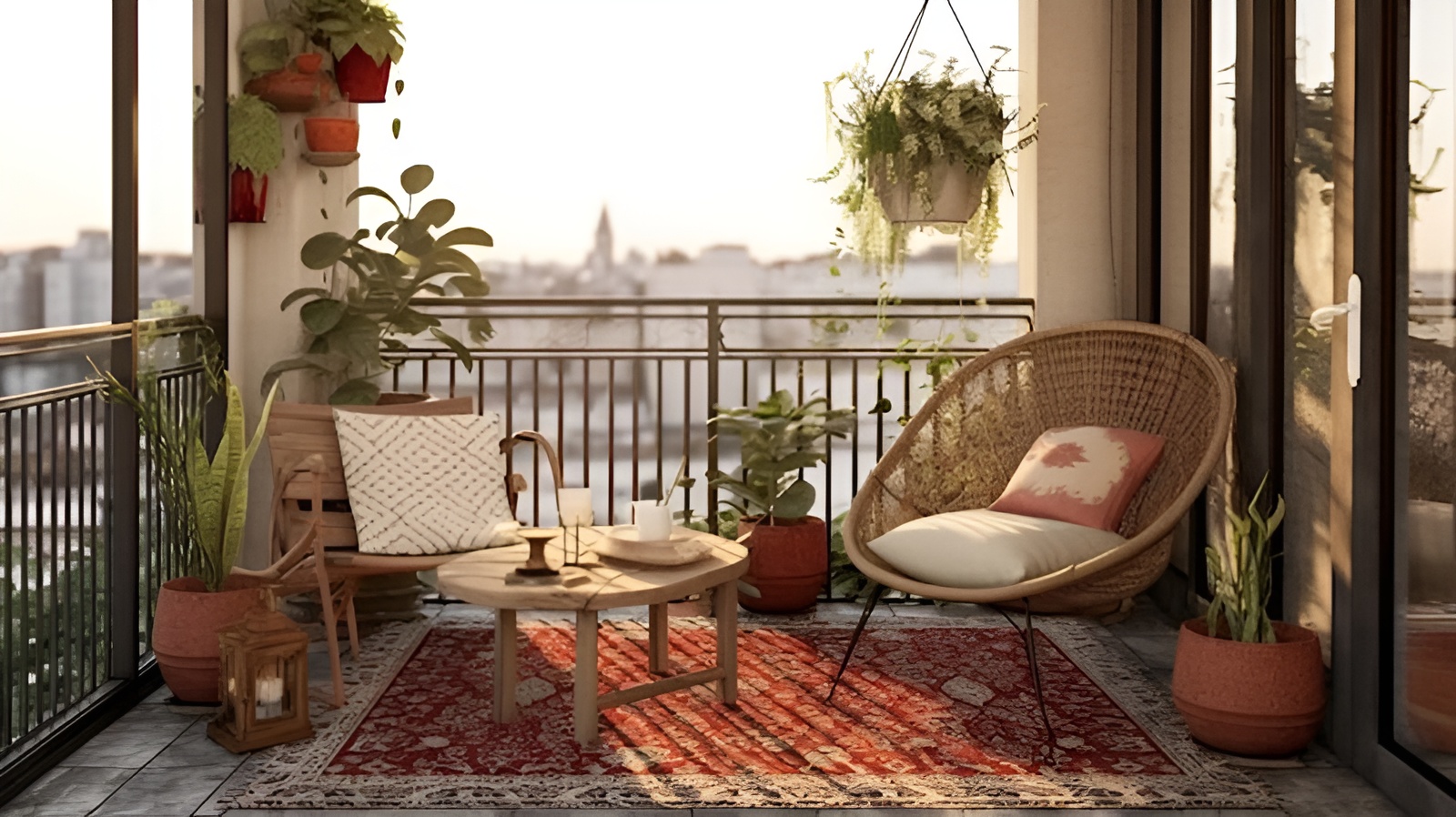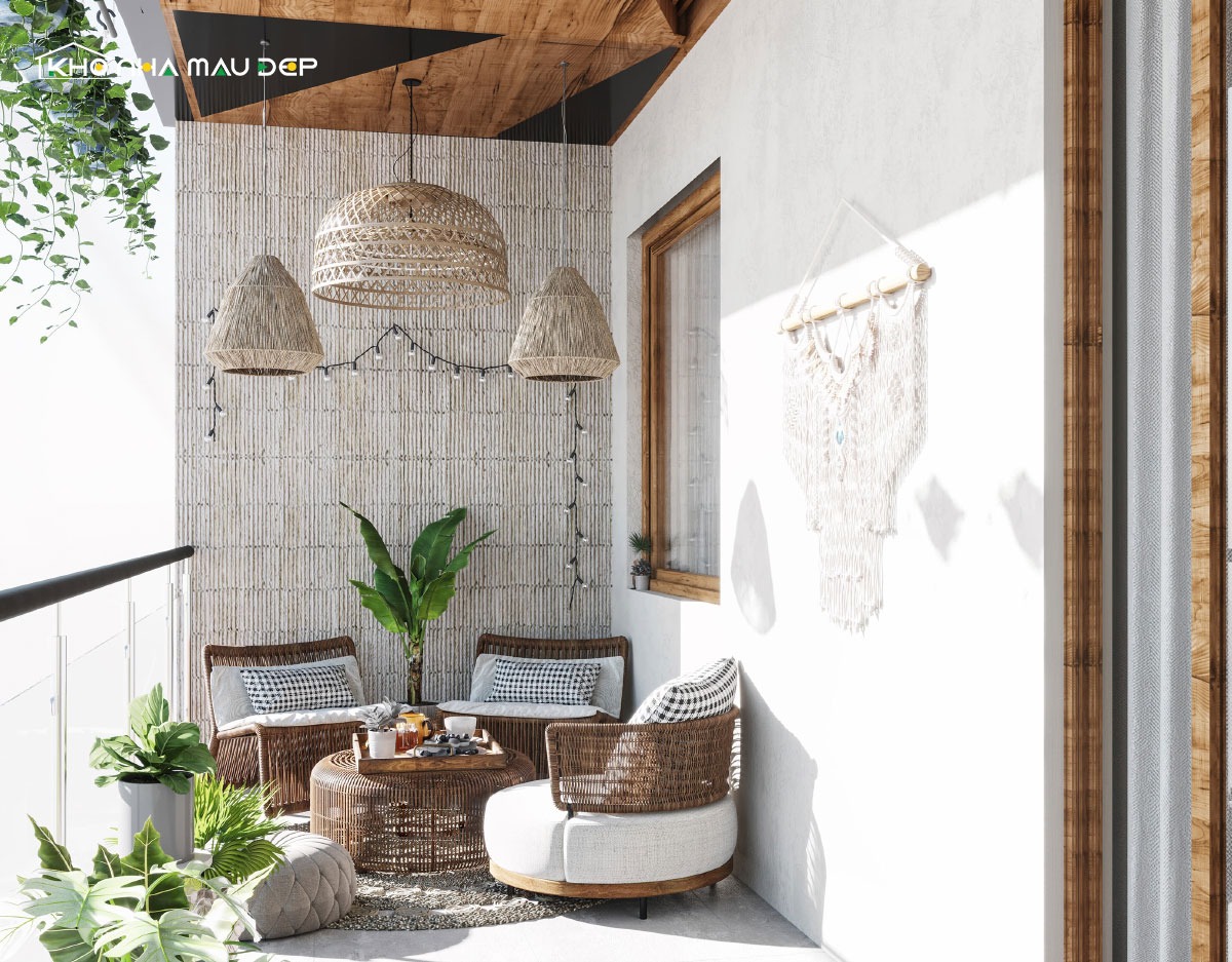 Phong cách Bohemian được áp dụng khi thiết kế ban công cho nhà phố. Nguồn Kho Nhà Mẫu Đẹp.