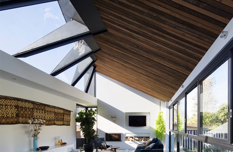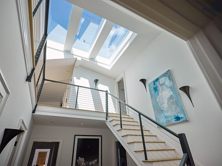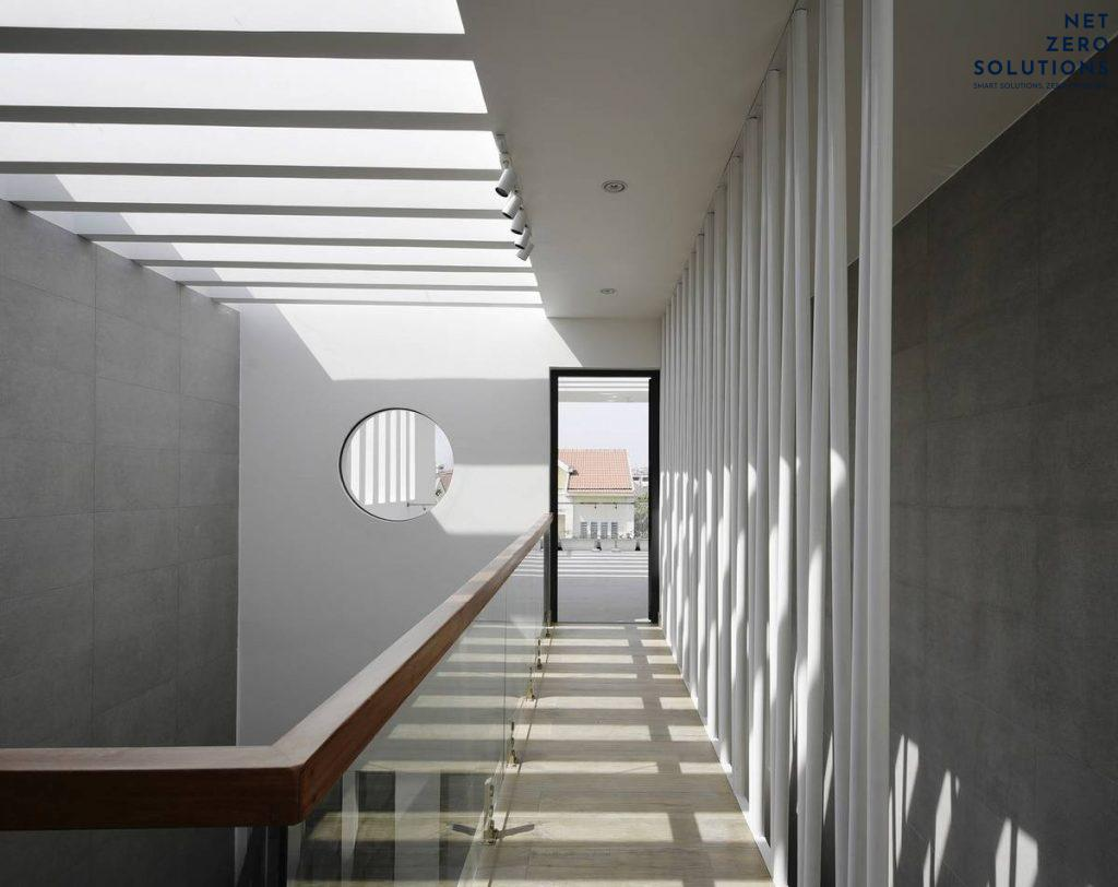 Sử dụng chất liệu kính để làm giếng trời nhằm tối ưu không gian. Nguồn Net Zero Solutions.