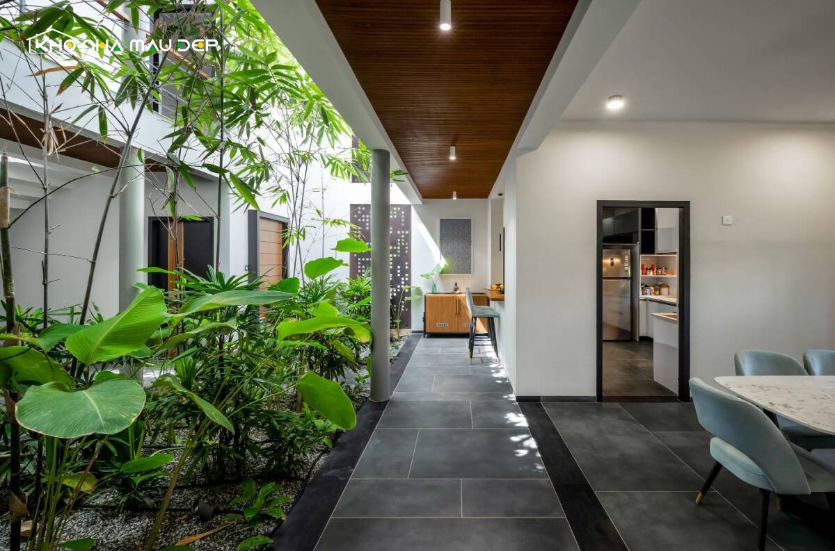 Bố trí thêm cây giúp khu vực giếng trời trở nên sinh động, gần gũi. Nguồn Kho Nhà Mẫu Đẹp.