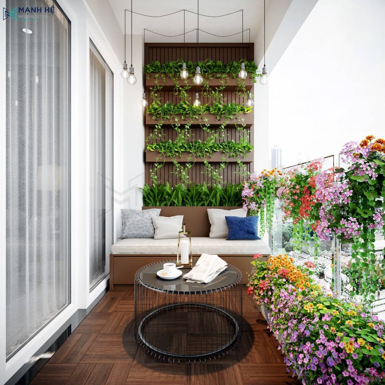 Thiết kế ban công thành vườn hoa, dàn hoa. Nguồn Nội Thất Mạnh Hệ.