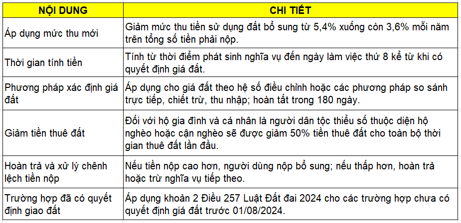 Trường hợp đã có quyết định giao đất, cho phép chuyển mục đích sử dụng đất hoặc điều chỉnh quy hoạch chi tiết trước ngày 1/8/2024 nhưng chưa xác định giá đất để tính tiền sử dụng đất, thì việc tính và thu tiền sử dụng đất sẽ được thực hiện theo quy định tại khoản 2, Điều 257 của Luật Đất đai năm 2024.