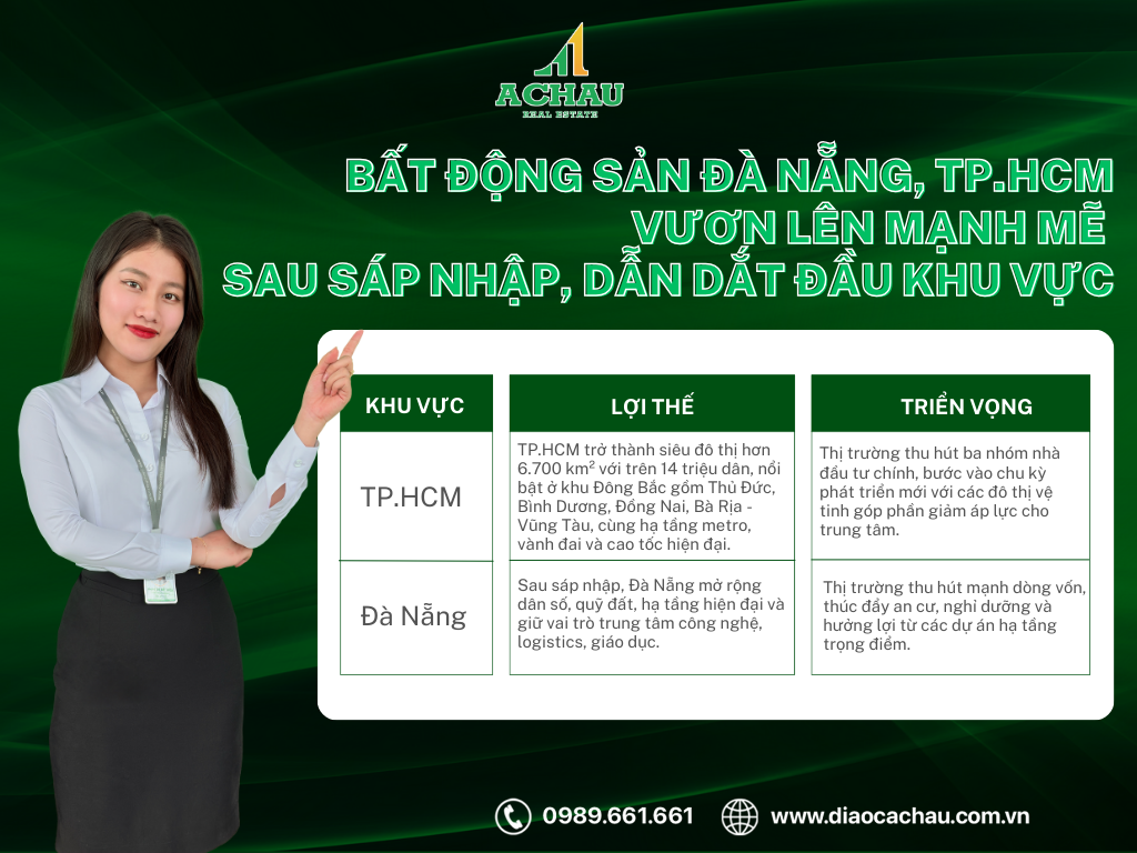 Đà Nẵng và TP.HCM, với hạ tầng hiện đại, quy hoạch bài bản và vị trí chiến lược, đang giữ vai trò đầu tàu bất động sản miền Trung và miền Nam. Sau sáp nhập, hai thành phố không chỉ mở rộng quy mô mà còn khơi thông tiềm năng phát triển, hứa hẹn trở thành điểm đến hấp dẫn cho các dòng vốn đầu tư trong giai đoạn tới.