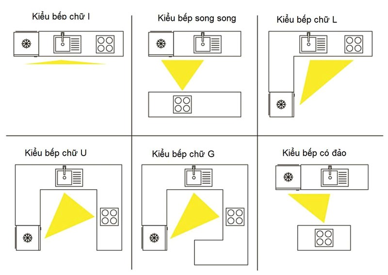 Tam giác bố trí bếp, tủ lạnh và bồn rửa. Nguồn An Khoa Design.