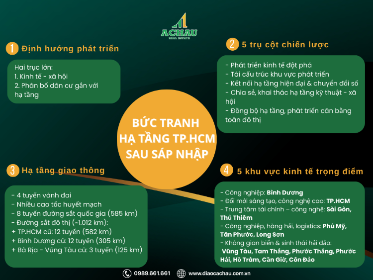 Bức tranh hạ tầng TP.HCM sau sáp nhập cho thấy vai trò hạt nhân của giao thông trong định hình dân cư và giá trị bất động sản. Với các trục vành đai, cao tốc, đường sắt quốc gia đô thị, cùng định hướng 5 trụ cột và danh mục ưu tiên đến 2030, toàn vùng bước vào chu kỳ phát triển mới, các đô thị vệ tinh hỗ trợ khu lõi, tạo nền tảng tăng trưởng bền vững.