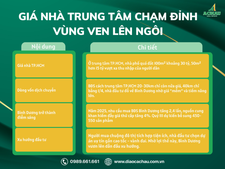 Giá bất động sản tại trung tâm TP.HCM đã vượt xa khả năng chi trả của phần lớn người dân. Trong bối cảnh đó, Bình Dương cùng một số khu vực vùng ven đang trở thành lựa chọn hấp dẫn, thu hút mạnh mẽ dòng vốn đầu tư.
