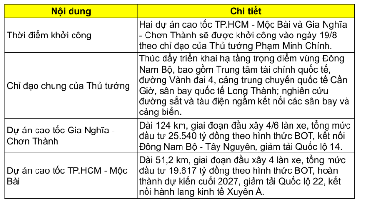 Thủ tướng Chính phủ Phạm Minh Chính yêu cầu khởi công cao tốc TP.HCM - Mộc Bài và cao tốc Gia Nghĩa - Chơn Thành vào ngày 19/8 tới.