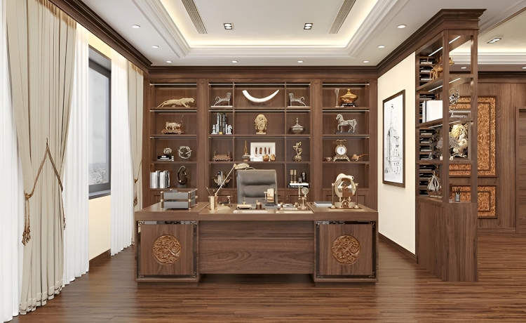 Không gian dành cho lãnh đạo được ưu tiên ở khu vực trang trọng hơn, thể hiện sự vị thế và uy tín. Những phòng có cửa sổ lớn, nhiều ánh sáng luôn được xem là lựa chọn phù hợp để tăng sự minh mẫn và tạo nguồn năng lượng tích cực.