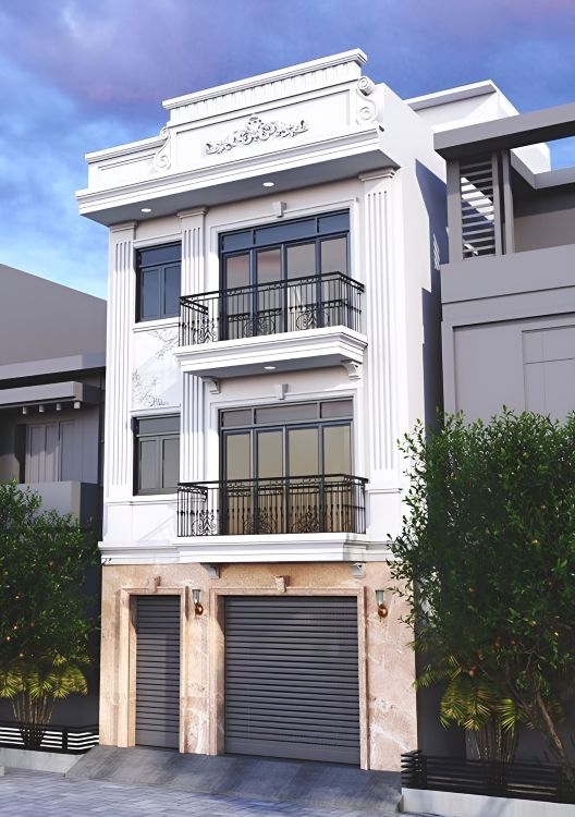 6. Mẫu nhà ống tân cổ điển 3 tầng mặt tiền rộng 6 - 7m